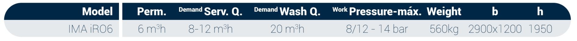 Standard features of the IMA iRO 6 m3/h systems: